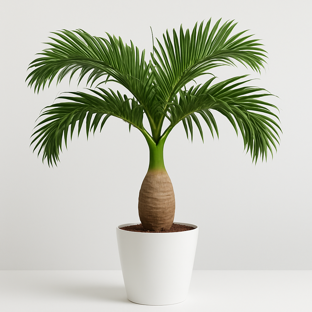 The well-named bottle palm tree, Hyophorbe lagenicaulis, is an eye-catching evergreen palm for your garden or container whose trunk bears a startling resemblance to a fine bottle of wine. It’s a compact tree, topping out at 10 to 15 feet considerably smaller if grown indoors and it fits nicely into petite gardens. As an outdoor plant, the bottle palm is best suited to the southern parts of the U.S., in USDA hardiness zones 10 to 11. Indoors, however, it will thrive whenever placed in front of a sunny window, requiring little extra care.