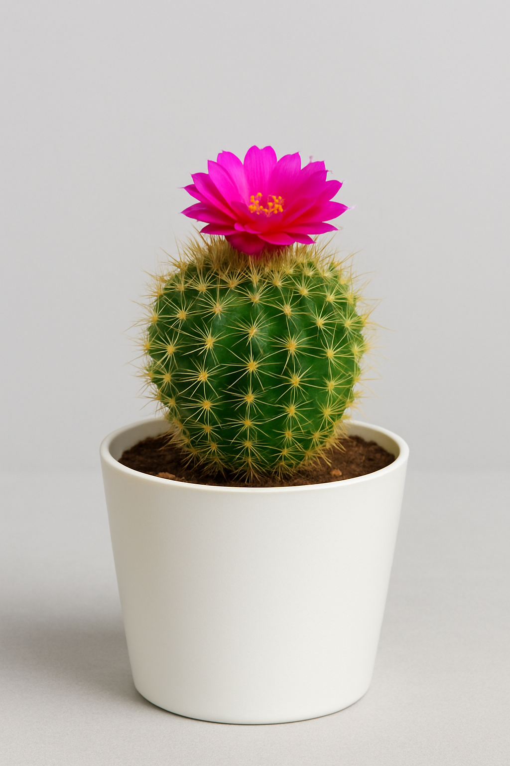 Notocactus rutilans best known as Notocactus rutilans, is a small-growing, usually solitary, cactus species. The numerous stiff, sharp spines are varicoloured and the centrals are reddish-brown. The flowers are very showy, 5 cm long, with much white wool along the tubes, and translucent petals, salmon to carmine-red shading to egg-yolk yellow in the centre. The plants are very free-flowering and self- fertile; producing many seeds. When in flower the whole plant shimmers with color and it flowers when quite young,
