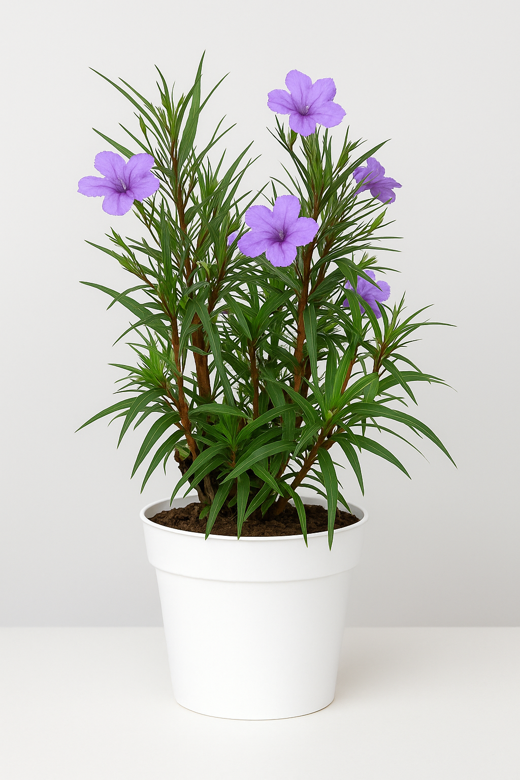 The best approach is for watering just enough to keep the soil consistently moist. While these plants are sturdy and can go without water for a long time, young petunia ruellia simplex needs regular watering.
